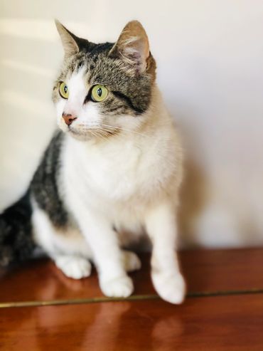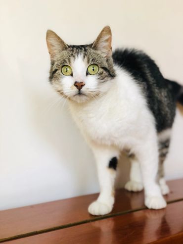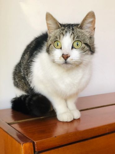 However, George seems to be suffering from a little post-traumatic stress at the moment and is the most protective mumma cat I've ever seen. She HATES other animals going near her baby and will lash out. I'm positive all of this stress will subside but I think she would be best in a home with no other animals. In the time we have had her she has improved out of site and hasn‘t lashed out in ages. She even rubs up against my dog, Tempeh. However, I think she would just be best with The lowest stress environment possible - she deserves to be chill after all she has been through!